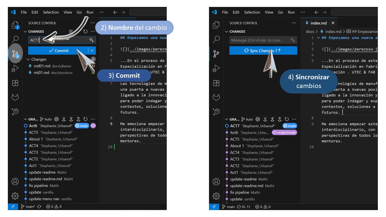 Entonces, a medida que vamos realizando los cambios, debemos seguir la siguiente secuencia para poder sincronizar dichas modicaciones en nuestro repositorio web.
