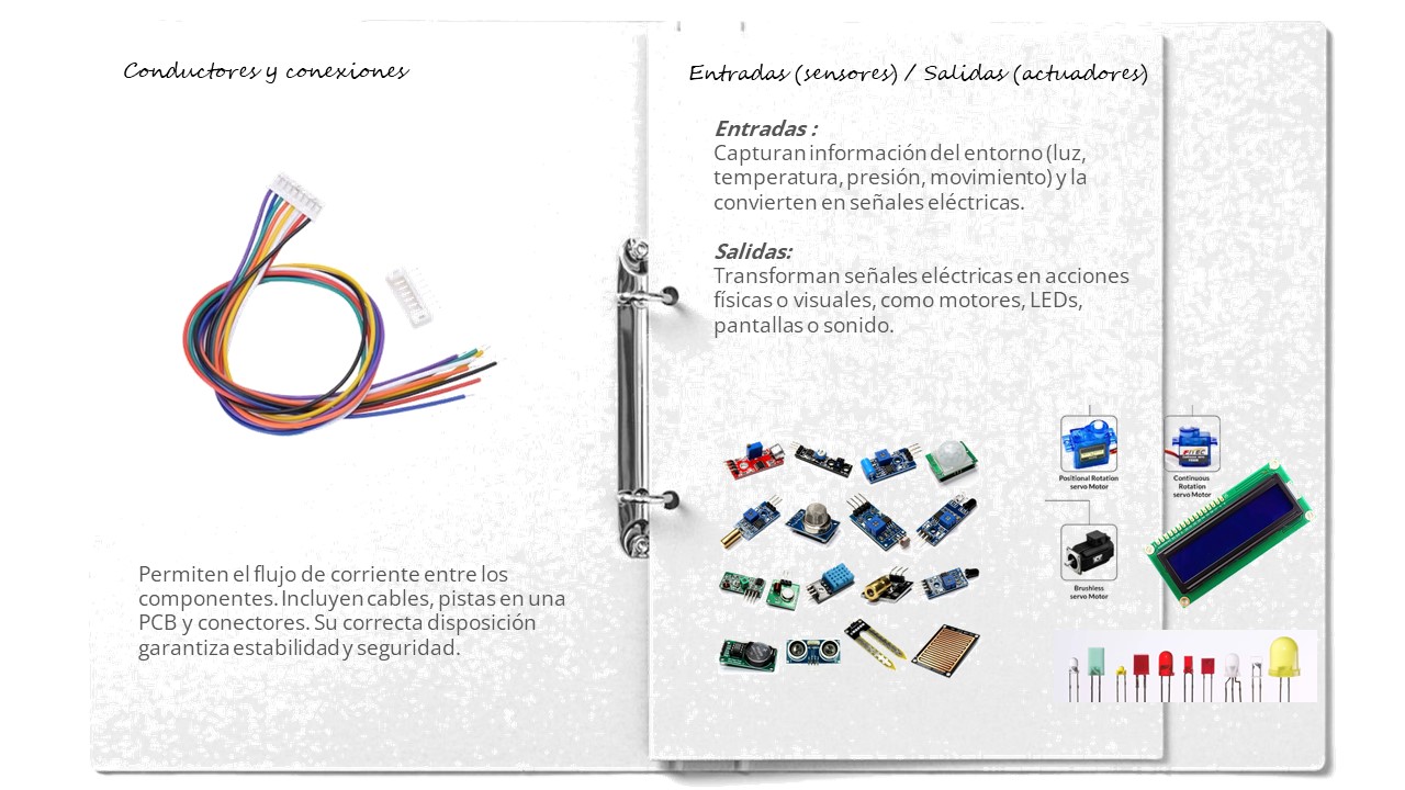 Está compuesto por dispositivos, componentes y estructuras físicas (sensores, circuitos, cables, placas, fuentes de energía, microcontroladores, etc.) que trabajan de manera integrada para recibir información, procesarla y producir una respuesta.